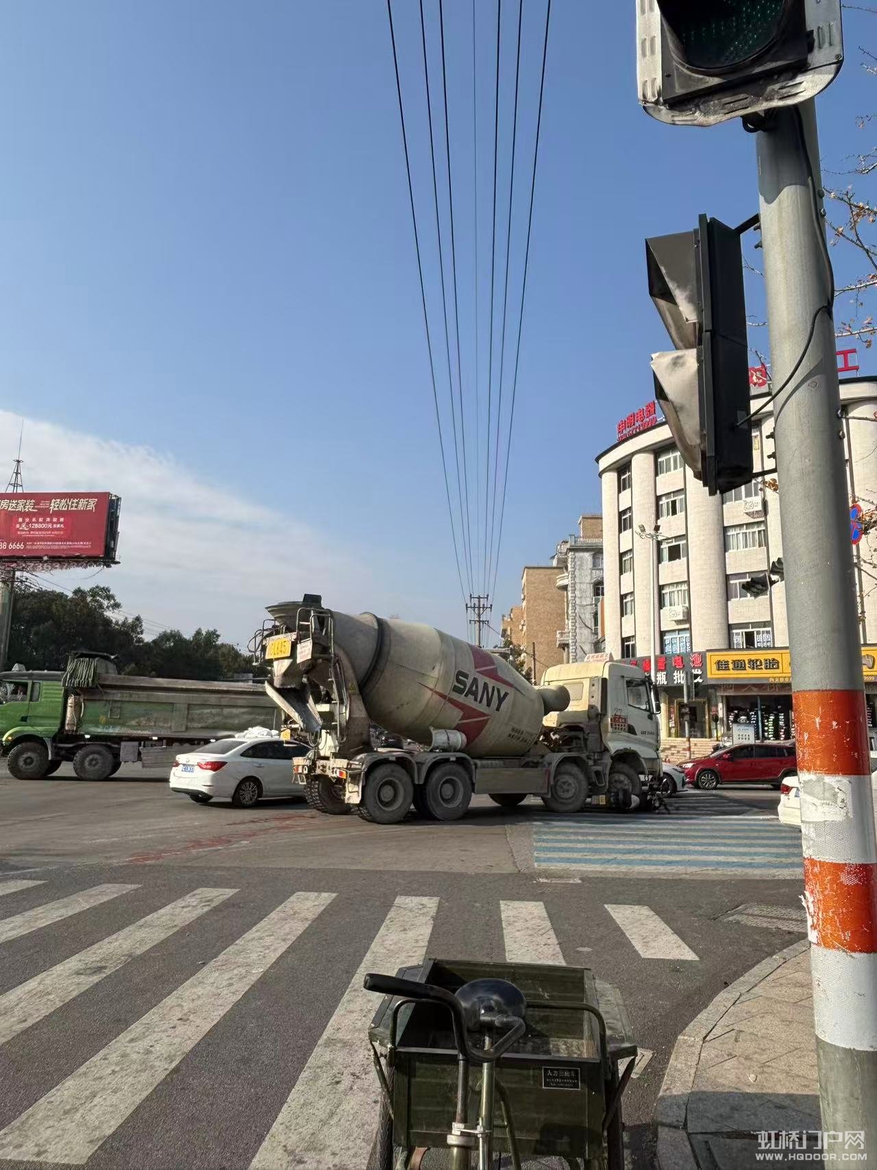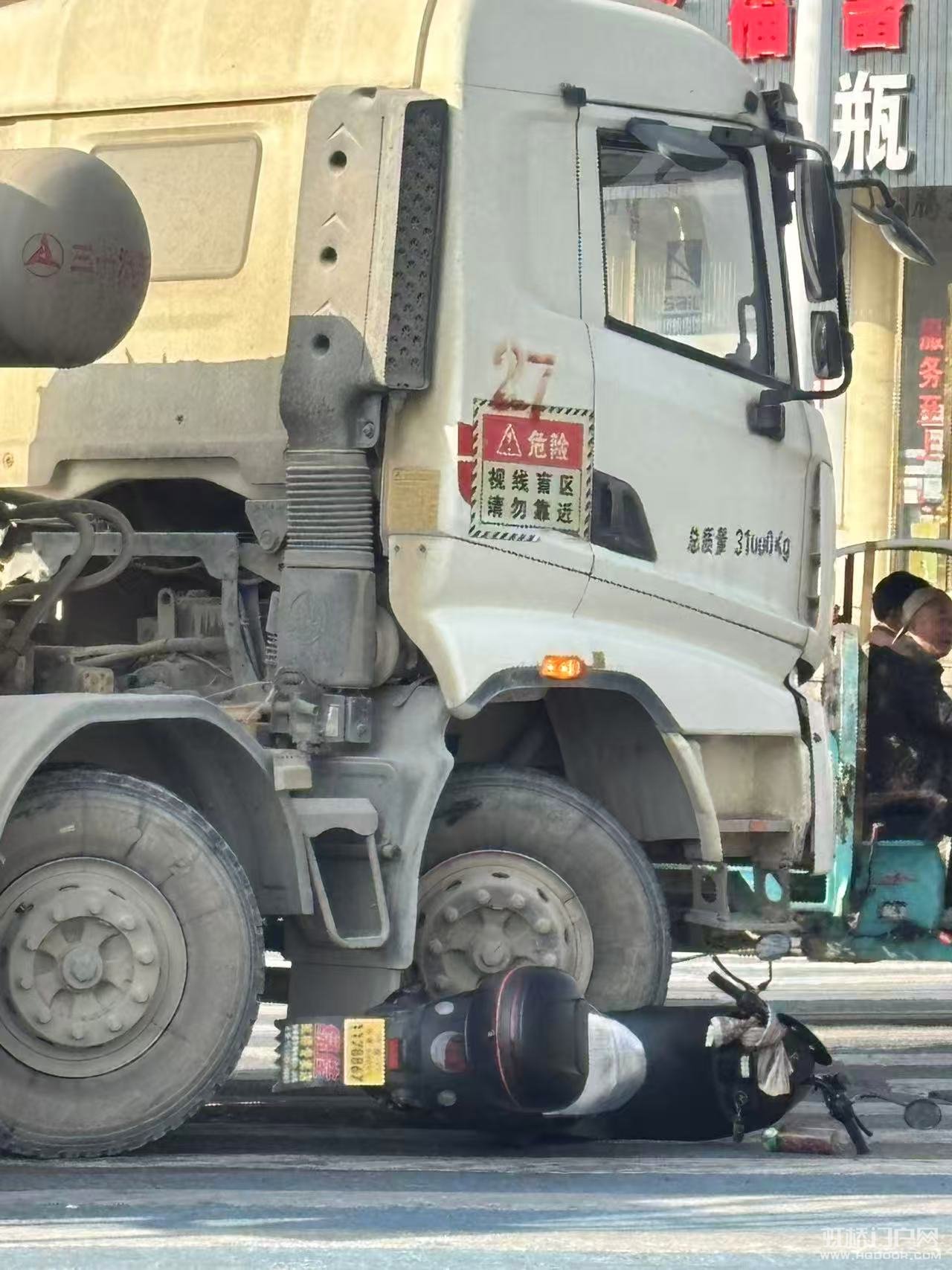 虹桥东站路口发生车祸,电瓶车被压在搅拌车车轮下