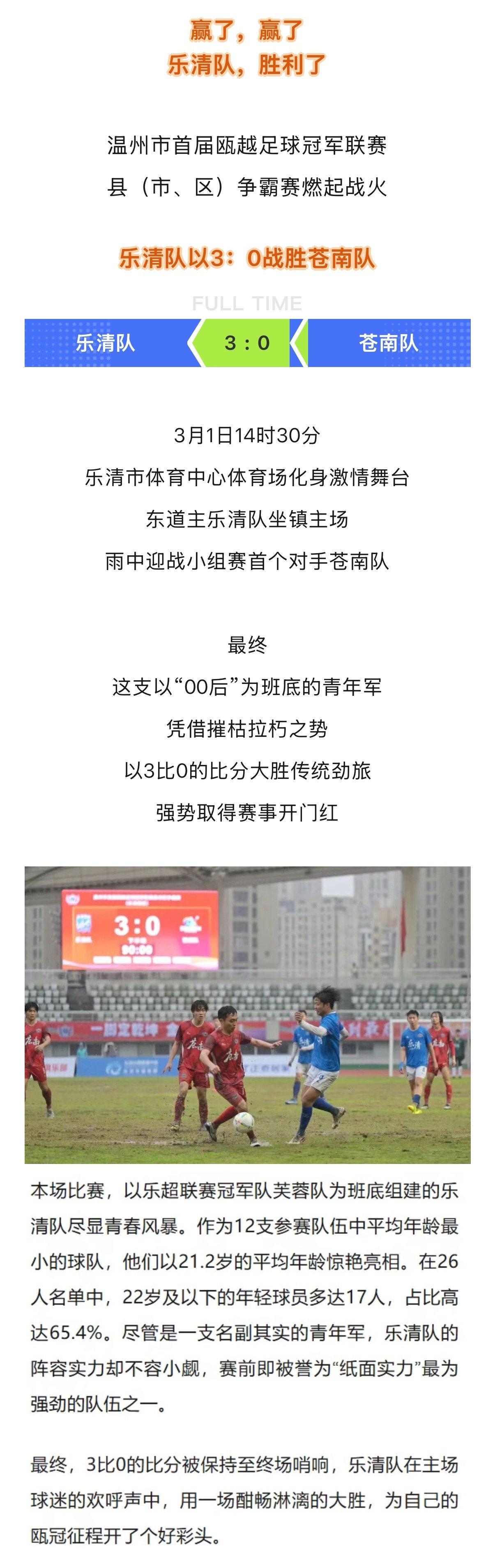 3:0!乐清赢了!